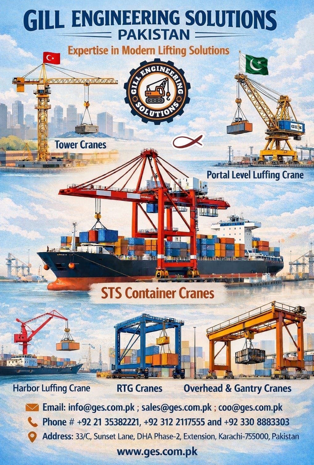 GES aims to become a premier engineering company in Pakistan, manufacturing cost-effective and providing turnkey engineering solutions, after-sales and marketing services of industrial products, HEAVY LIFTING JOBS MANAGEMENT, ERECTION OF ALL KIND OF CRANES.